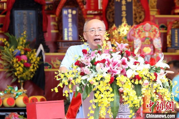 10月22日,臺(tái)北客家義民嘉年華主祭大典在臺(tái)北舉辦。世界客屬總會(huì)榮譽(yù)總會(huì)長(zhǎng)吳伯雄致辭。 中新社記者 陳小愿 攝