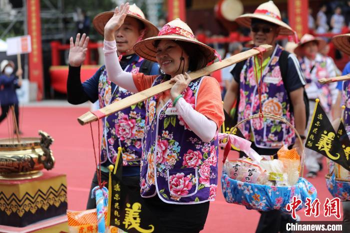 10月22日,臺(tái)北客家義民嘉年華主祭大典在臺(tái)北舉辦。圖為客家鄉(xiāng)親擔(dān)挑參與活動(dòng)。 中新社記者 陳小愿 攝