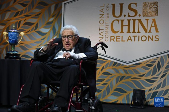 10月24日,美國前國務卿基辛格在紐約舉行的美中關系全國委員會年度頒獎晚宴上講話。新華社記者李睿攝