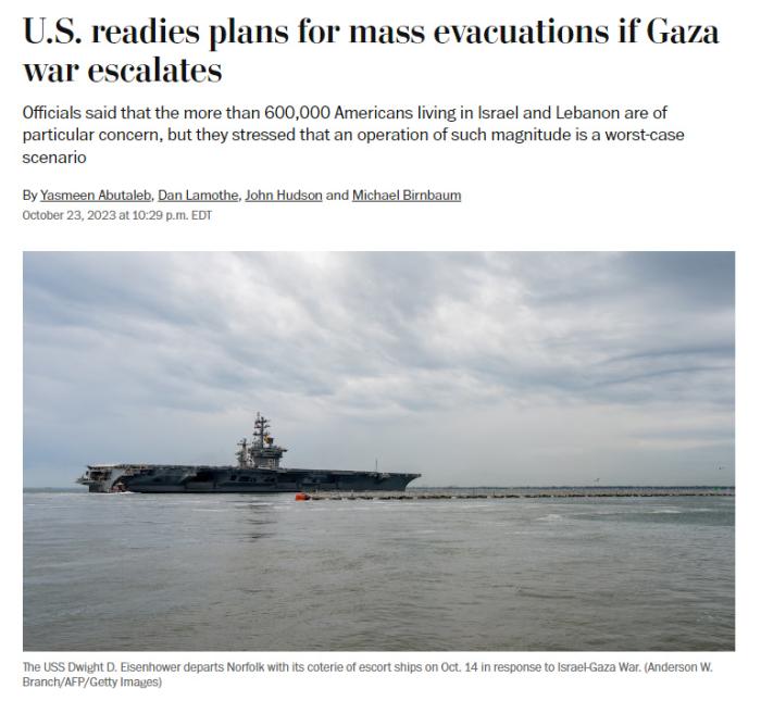 報(bào)道還稱,根據(jù)美國(guó)政府可能展開的撤離公民行動(dòng)的規(guī)模,這場(chǎng)行動(dòng)可能比以往的任何撤離公民行動(dòng)都更加困難。此次行動(dòng)可能涉及10月已經(jīng)“涌入”中東地區(qū)的美國(guó)空軍飛機(jī)和海軍艦艇。