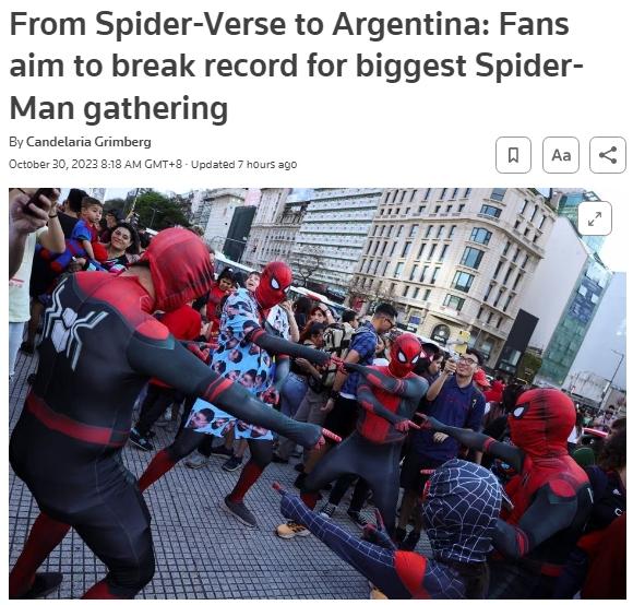 據(jù)報(bào)道,阿根廷網(wǎng)紅尤基·丁恩(Uki Deane)通過社交媒體籌辦了這次活動(dòng),希望能一舉打破馬來西亞2023年6月創(chuàng)下的685名“蜘蛛俠”齊聚的紀(jì)錄。