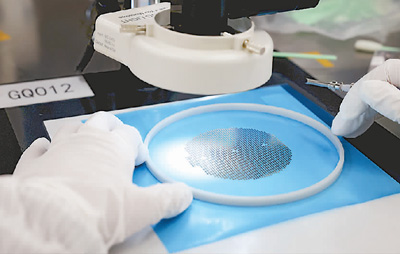 福建省福州高新技術產業(yè)開發(fā)區(qū)一芯片生產車間,工作人員在檢測芯片產品。