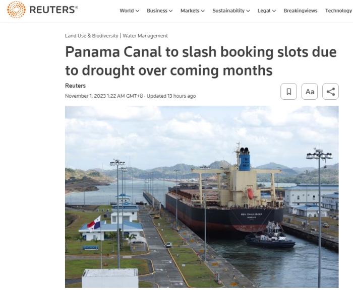 據(jù)報(bào)道,巴拿馬運(yùn)河管理局(ACP)在10月30日晚間的公告中表示,從11月3日開(kāi)始,巴拿馬運(yùn)河的通行名額將從每天31個(gè)減少到每天25個(gè),并將在未來(lái)三個(gè)月內(nèi)逐步減少,計(jì)劃到2024年2月減少為每天18個(gè)名額。