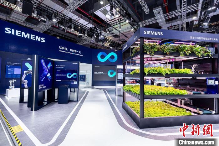 西門子參展第六屆進(jìn)博會(huì)的主題為“以科技,共創(chuàng)每一天”,設(shè)置行業(yè)轉(zhuǎn)型實(shí)踐、前沿科技、生態(tài)價(jià)值共創(chuàng)三大展區(qū)。(西門子供圖)