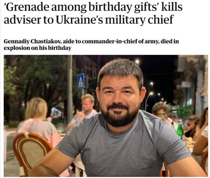 據(jù)報(bào)道,當(dāng)天,烏克蘭武裝部隊(duì)總司令瓦列里·扎盧日內(nèi)在社交媒體Telegram上發(fā)文稱(chēng),“很不幸地,我的助手兼好友根納季·查斯季亞科夫少校(Gennadiy Chastyakov)今天在他的生日當(dāng)天身亡。”