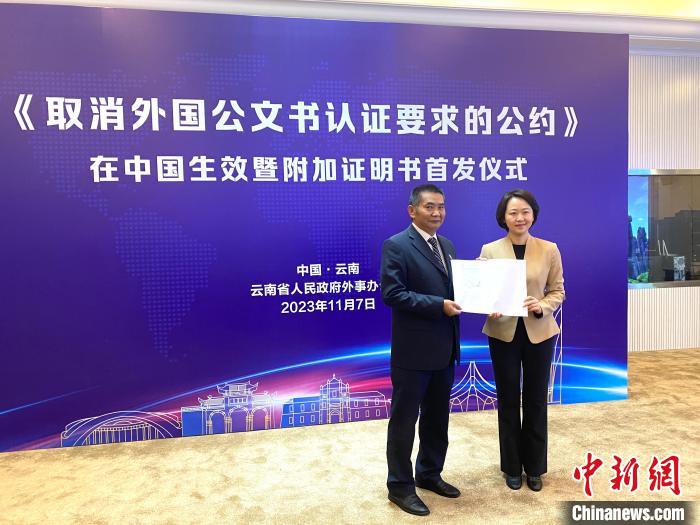 《取消外國(guó)公文書(shū)認(rèn)證要求的公約》在中國(guó)生效 云南簽發(fā)首張附加證明書(shū)