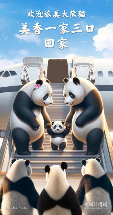 當天,“美香”一家在飽餐后,在工作人員引導下,緩緩進入帶有通氣孔的特制箱子,前往杜勒斯國際機場乘專機啟程返回中國。期間,在安克雷奇市短暫加油休整后,專機直飛中國成都。