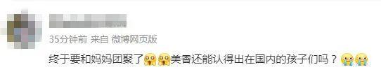 還有網(wǎng)友感慨,“終于要和媽媽團聚了,美香還能認得出在國內(nèi)的孩子們嗎?”