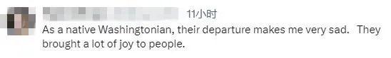 有網(wǎng)友說,“作為一個土生土長的華盛頓人,它們的離開讓我非常難過。它們給人們帶來了很多快樂?!?/p>
