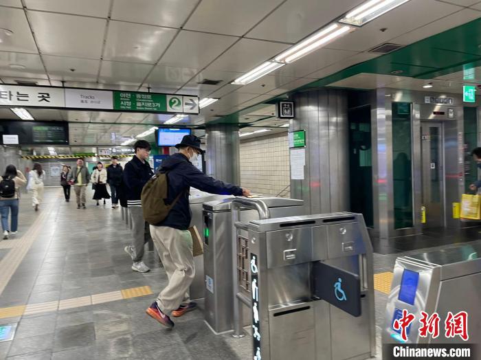 當(dāng)?shù)貢r間9日,市民在首爾地鐵新村站刷卡進(jìn)站。萬佳欣 攝