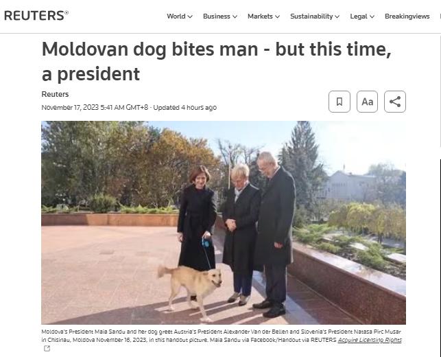 中新網(wǎng)11月17日電 據(jù)路透社援引摩爾多瓦媒體消息,當(dāng)?shù)貢r間16日,摩爾多瓦總統(tǒng)桑杜的愛犬在總統(tǒng)官邸咬傷了到訪的奧地利總統(tǒng)范德貝倫。