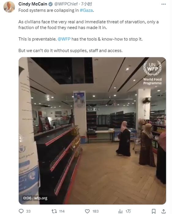 圖片來源:世界糧食計(jì)劃署執(zhí)行主任辛迪·麥凱恩社交媒體賬戶截圖