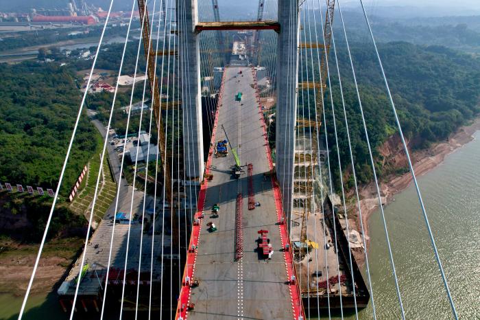 大橋原計劃2025年12月底建成,目前已提前至同年6月竣工。張馳表示,工期縮短得益于大家的創(chuàng)新精神,任何一個小的技術(shù)改進(jìn)都會帶來整體工期的縮短。“‘基建狂魔’(的名號)是干出來的,”他打趣地說道。