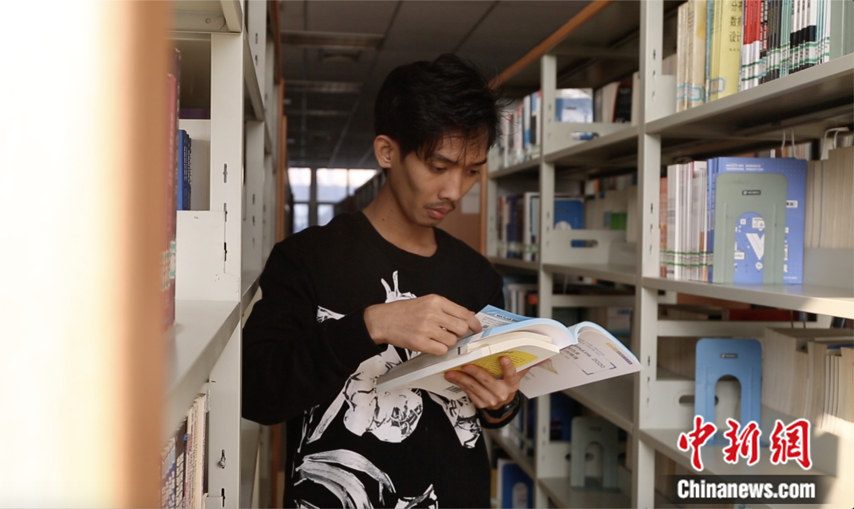 2023年10月,圖為印尼留學(xué)生陳君其在圖書(shū)館查閱資料。高瑩 攝