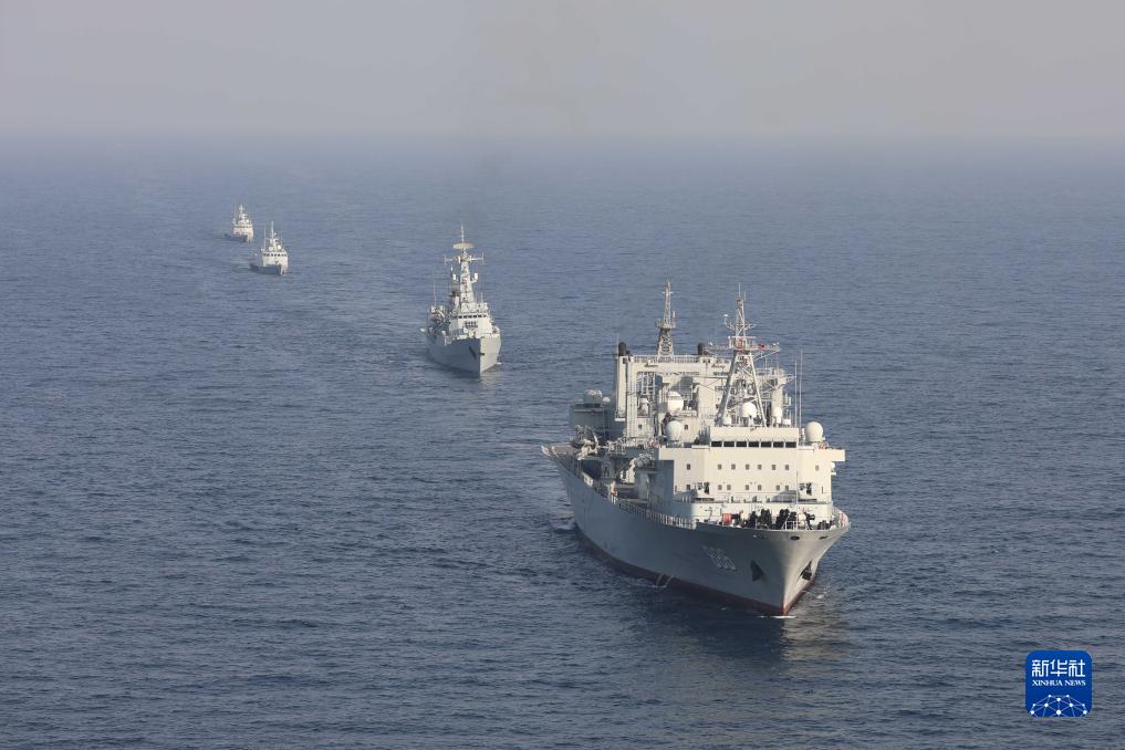 中巴“海洋衛(wèi)士-3”海上聯(lián)合演習(xí)在阿拉伯海北部海空域舉行,雙方艦艇組織編隊運動(11月14日攝)。新華社發(fā)(姜霞攝)