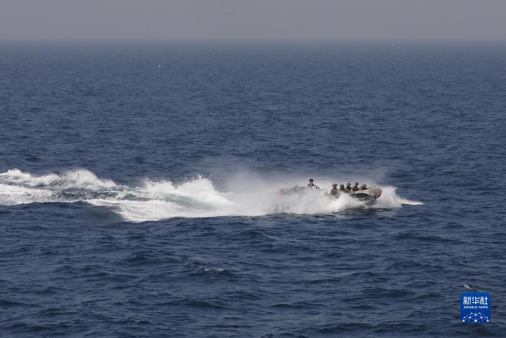 中巴“海洋衛(wèi)士-3”海上聯(lián)合演習(xí)在阿拉伯海北部海空域舉行,中國海軍荊州艦特戰(zhàn)隊員在臨檢拿捕演練中乘小艇前出(11月14日攝)。新華社發(fā)(姜霞攝)