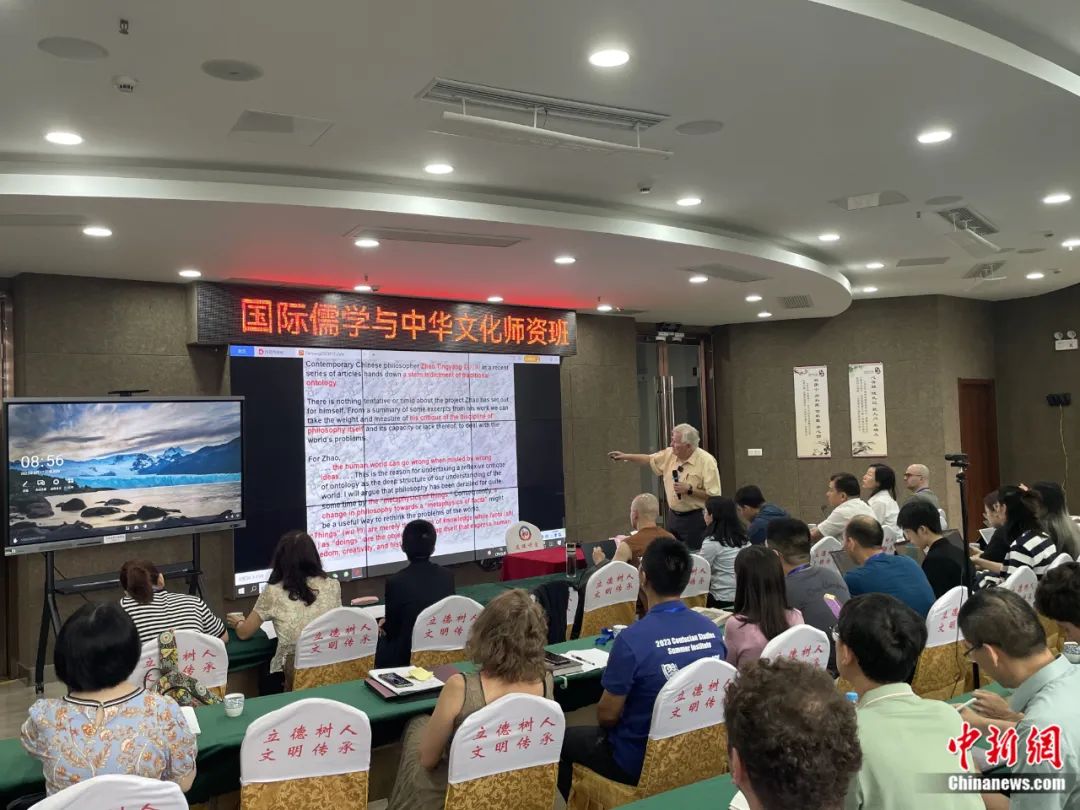 2023年8月15日,中西比較哲學(xué)家安樂哲在給學(xué)生們講課。李國慶 攝