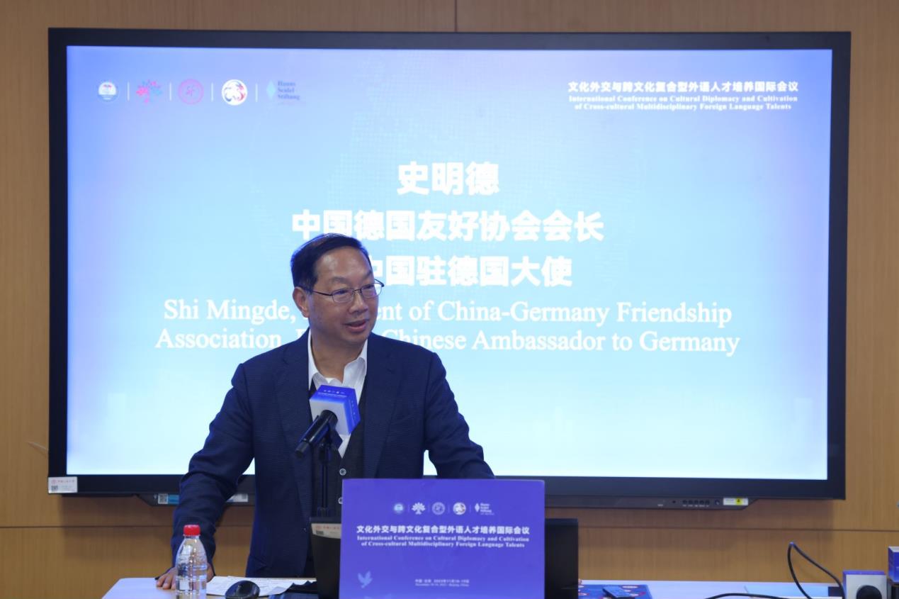 中德友協(xié)會長、前駐德國大使史明德在致辭中指出,人大在培養(yǎng)高質(zhì)量區(qū)域與國別人才方面具有獨特條件和優(yōu)勢,師資雄厚、學科齊全、研究基礎(chǔ)牢固,未來一定大有作為。