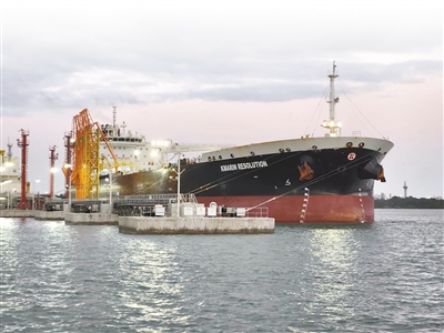 肯尼亞蒙巴薩港新建KOT油碼頭是一座具有國際領(lǐng)先水平的現(xiàn)代化油氣裝卸碼頭,由中國交通建設(shè)集團(tuán)有限公司承建。該碼頭能夠同時(shí)實(shí)現(xiàn)原油、重油、汽油、柴油、煤油和液化石油氣的進(jìn)出口轉(zhuǎn)運(yùn)功能,投入使用后大幅提升了蒙巴薩港油氣中轉(zhuǎn)能力,為肯尼亞經(jīng)濟(jì)發(fā)展增添新動(dòng)力。圖為停靠在該碼頭的一艘油輪正在進(jìn)行卸油作業(yè)。