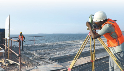 坦桑尼亞馬古富力大橋由中國土木工程集團(tuán)有限公司和中鐵十五局聯(lián)合承建,連接坦桑尼亞蓋塔省和姆萬扎省,是坦桑尼亞重要的內(nèi)陸國際通道。大橋建成后將極大改善當(dāng)?shù)亟煌顩r,帶動(dòng)坦桑尼亞與周邊國家的互聯(lián)互通,促進(jìn)區(qū)域經(jīng)濟(jì)社會(huì)發(fā)展。圖為該項(xiàng)目外籍工程師正在使用全站儀進(jìn)行室外測(cè)控。