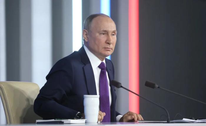 資料圖:2021年12月,普京在持續(xù)近4小時的年度記者會上回答了55個問題,涉及俄羅斯內政、中俄關系、俄烏關系等。圖片來源:俄羅斯克里姆林宮網(wǎng)站