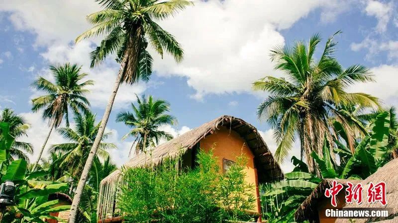 圖為掩映在椰林中的王下鄉(xiāng)特色茅草屋民宿。凌楠 攝