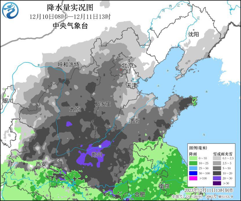 中新網(wǎng)12月11日電 據(jù)中央氣象臺網(wǎng)站消息,12月10日以來,華北、黃淮等地出現(xiàn)中到大雪,局地暴雪或大暴雪,新增積雪深度3~8厘米,部分地區(qū)超過10厘米;山西、河南、陜西、河北、內蒙古等地共128個國家氣象觀測站日降水量突破12月極值。中東部地區(qū)氣溫普降8~12℃,局地14℃以上,北方部分地區(qū)出現(xiàn)6~8級陣風。