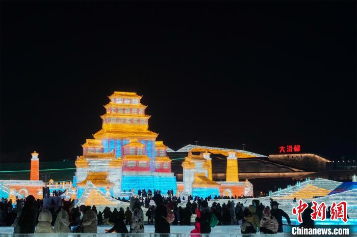 第二十五屆哈爾濱冰雪大世界主塔“冰雪之冠”景觀 趙宇航 攝