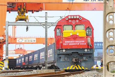 “開行量持續(xù)增加、運輸產(chǎn)品更加多元、線路不斷豐富優(yōu)化……從中歐班列開行的變化中,可以明顯看出共建‘一帶一路’倡議提出十年來的蓬勃發(fā)展?!背啥紘H鐵路港經(jīng)開區(qū)管委會主任雷庭介紹。