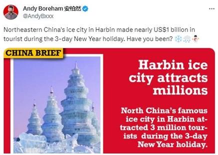 事實(shí)上,過去的元旦假期,這座位于中國東北的冰雪城市,不僅在國內(nèi)持續(xù)走紅,外國網(wǎng)友也紛紛表示,想去哈爾濱這個(gè)神奇而美麗的地方!