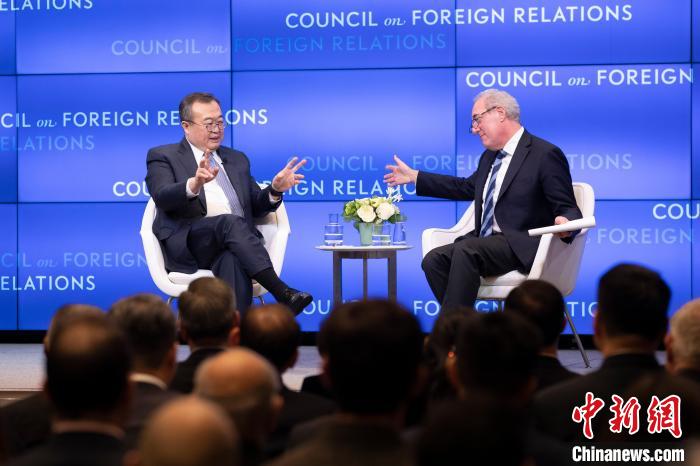 當(dāng)?shù)貢r間1月9日,中共中央對外聯(lián)絡(luò)部部長劉建超應(yīng)邀在美國對外關(guān)系委員會發(fā)表演講并與外方互動交流,美戰(zhàn)略界、學(xué)界、媒體等各界人士近100人現(xiàn)場出席,400多人線上參加。圖為劉建超與美國對外關(guān)系委員會會長弗羅曼交流互動。 中新社記者 廖攀 攝