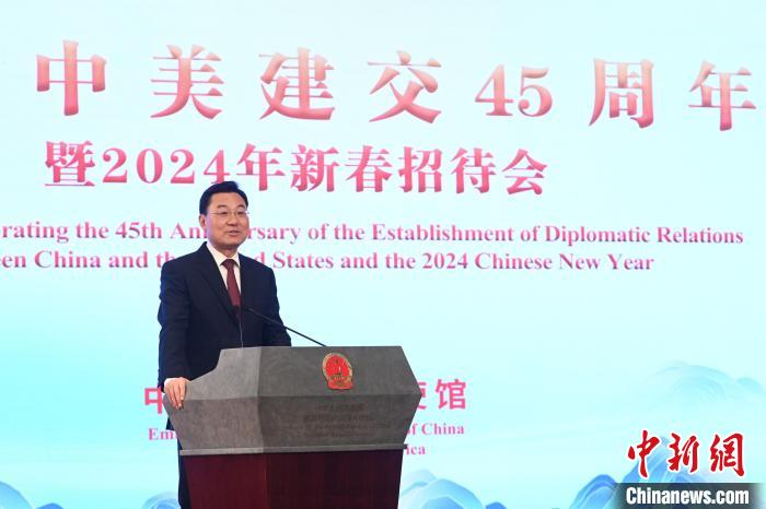 當(dāng)?shù)貢r(shí)間1月16日,中國駐美大使謝鋒在華盛頓舉辦的紀(jì)念中美建交45周年暨新春招待會上致辭。中新社記者 陳孟統(tǒng) 攝