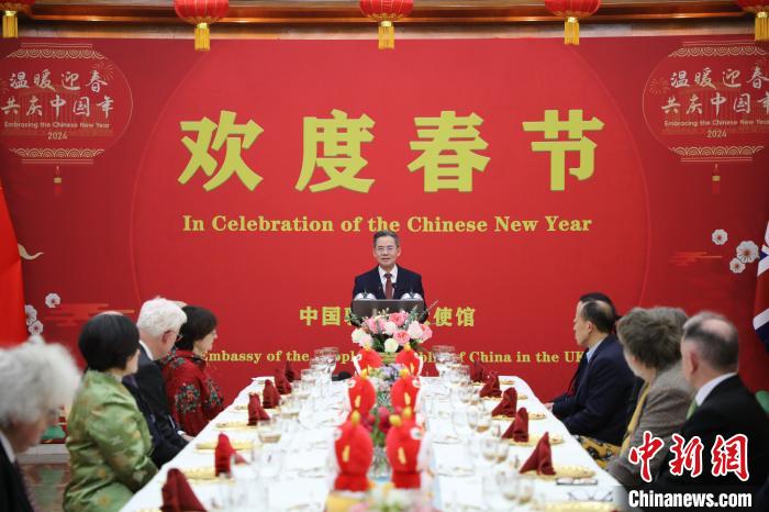 1月18日,中國駐英國大使鄭澤光和夫人華梅參贊舉辦專場招待會,邀請2023年新增選的中國科學(xué)院和中國工程院英籍院士及夫人參加,共度中國農(nóng)歷臘八節(jié),共迎新春佳節(jié)。圖為活動現(xiàn)場。(駐英使館供圖)