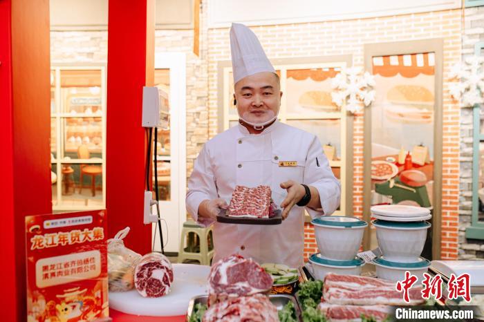商戶現(xiàn)場(chǎng)推介特色牛肉食品。黑龍江省商務(wù)廳供圖