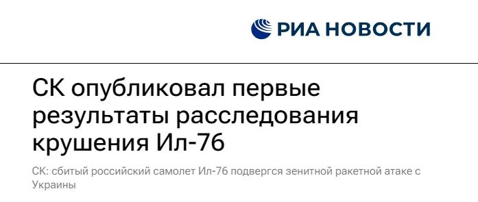 俄羅斯偵查委員會(huì)在聲明中表示,正在對(duì)機(jī)身碎片等物體進(jìn)行專(zhuān)業(yè)鑒定,同時(shí)詢(xún)問(wèn)事件目擊者并繼續(xù)進(jìn)行現(xiàn)場(chǎng)調(diào)查。根據(jù)初步調(diào)查結(jié)果,可以確定伊爾-76運(yùn)輸機(jī)遭到了來(lái)自烏克蘭境內(nèi)的防空導(dǎo)彈襲擊。