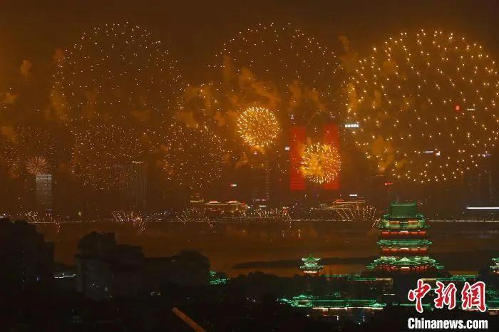絢麗的煙花與古色古香的江南名樓滕王閣交相輝映;