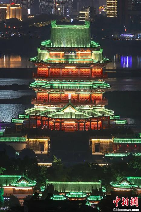 航拍江西南昌萬壽宮歷史文化街區(qū),不少游客在古色古香、燈火璀璨的街區(qū)中觀光游玩。劉力鑫 攝