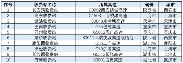 春節(jié)期間,全國高速公路預(yù)計易發(fā)生擁堵緩行的收費站,如下表所示。