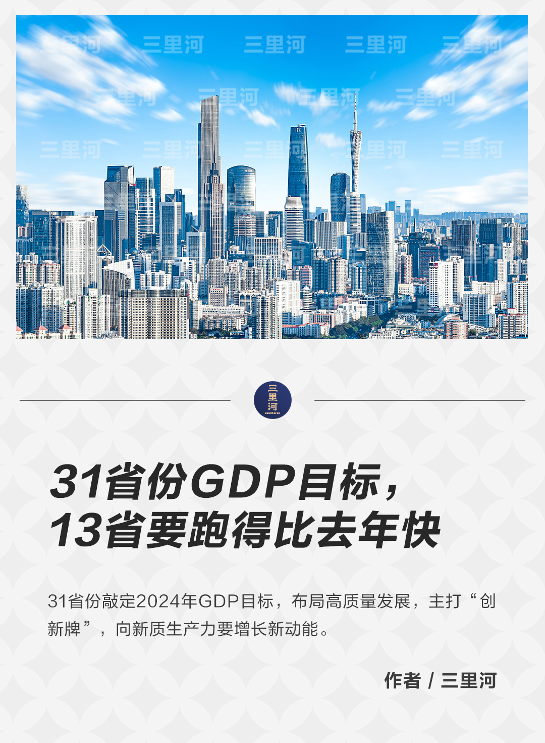 省級(jí)地方兩會(huì)是觀察中國(guó)經(jīng)濟(jì)的重要窗口。目前,中國(guó)31個(gè)省區(qū)市2023年GDP數(shù)據(jù)全部出爐,2024年經(jīng)濟(jì)增長(zhǎng)預(yù)期目標(biāo)亦全數(shù)公布。