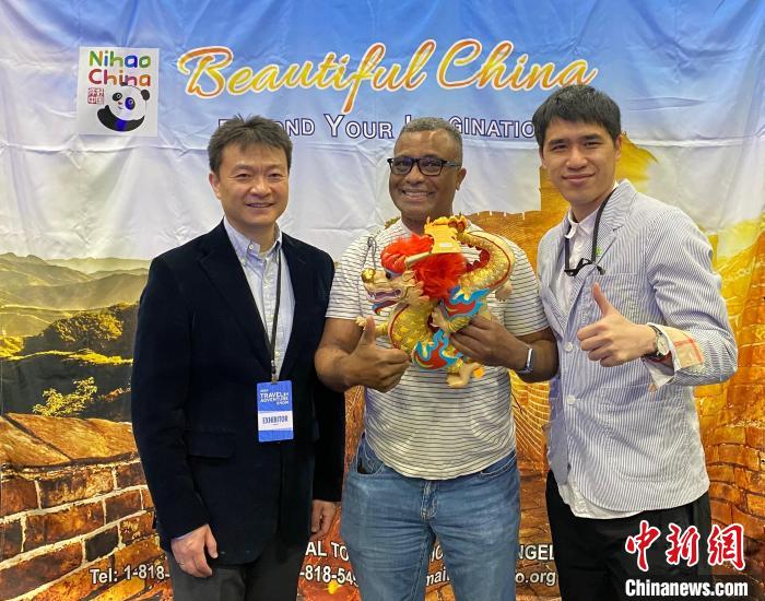 適逢龍年春節(jié)前夕,中國展臺擺放著文化和旅游部為龍年“歡樂春節(jié)”全球活動制作的吉祥物——“歡樂春節(jié)”吉祥龍,備受展會現(xiàn)場的美國民眾喜愛,不少參觀者很熟悉中國的生肖文化。