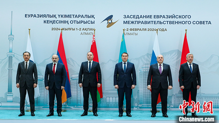 當(dāng)?shù)貢r(shí)間2月2日,哈薩克斯坦阿拉木圖,歐亞政府間理事會(huì)會(huì)議舉行。 中新社發(fā) 哈薩克斯坦總理府網(wǎng)站供圖