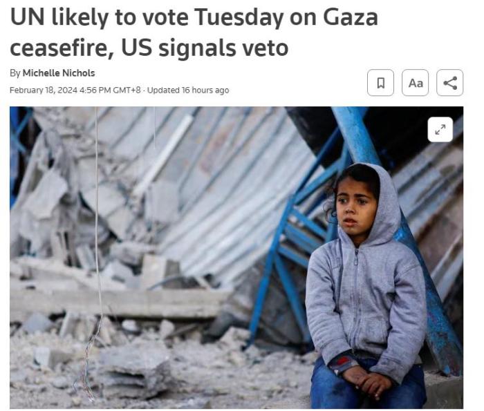 中新網(wǎng)2月19日電 綜合報道,外交人士表示,聯(lián)合國安理會或?qū)⒃诋?dāng)?shù)貢r間20日就阿爾及利亞提出的加沙人道停火決議進行投票,但美國暗示將在該投票中實施一票否決。