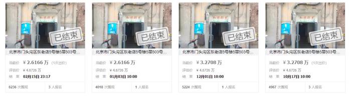 據(jù)阿里資產(chǎn)·司法平臺(tái)顯示的信息,北京市門頭溝區(qū)東老店5號(hào)樓5層503號(hào)(2%份額)在幾天前結(jié)束了拍賣,最終以26166.6元的價(jià)格被拍下。