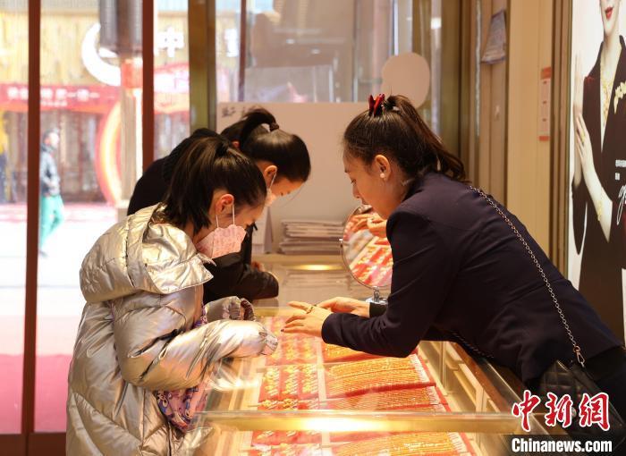 2024年2月,市民在商場(chǎng)內(nèi)選購(gòu)黃金飾品。 中新社記者 于晶 攝