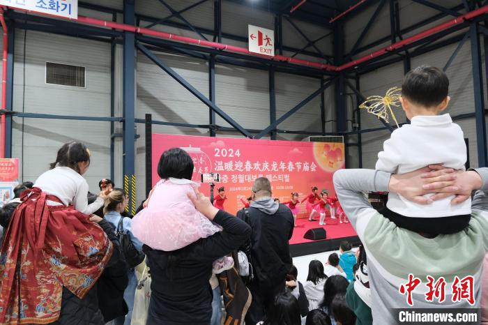 圖為觀眾在廟會(huì)現(xiàn)場(chǎng)欣賞演出。 中韓子女教育協(xié)會(huì)供圖