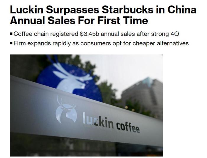 - 美媒:瑞幸首超星巴克,成中國市場最大咖啡連鎖品牌