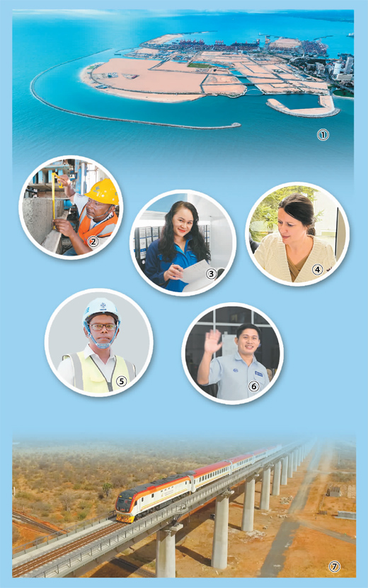 圖⑦:由中交集團(tuán)承建運(yùn)營的肯尼亞蒙內(nèi)鐵路采用中國標(biāo)準(zhǔn)、中國技術(shù)、中國裝備建造,是一條承載著發(fā)展夢想的世紀(jì)鐵路。