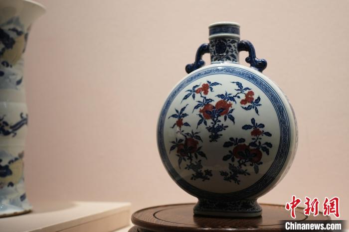 2月27日,正在“御瓷歸來”展覽上展出的“青花釉里紅折枝石榴紋抱月瓶”?!⑺紓?攝