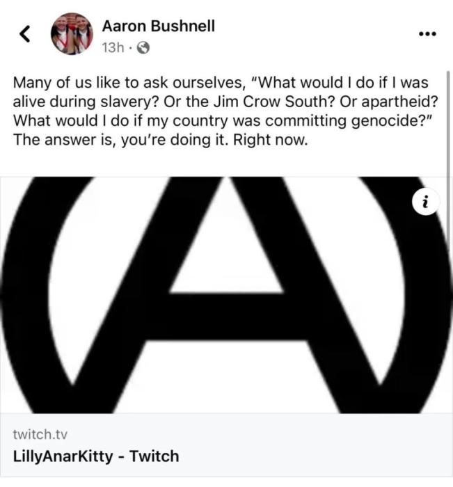 但最近的消息,顯示布什內(nèi)爾可能不是認(rèn)為美國“間接”幫助以色列種族滅絕,而是直接參與了。這些消息由《紐約郵報(bào)》(注意紐約郵報(bào)是偏右媒體,真實(shí)性自辨)披露,稱布什內(nèi)爾的朋友說“(布什內(nèi)爾)告訴我,我們?cè)谀切┧淼览镉熊婈?duì),美國士兵參與了殺戮”,“(情報(bào))出現(xiàn)了美國軍方參與種族屠殺的情況”。