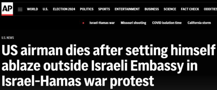 《馬卡》歷史地位飆升的一貼—— 《美空軍在以使館自焚為巴勒斯坦發(fā)聲: “我不會(huì)再當(dāng)種族滅絕的同謀”》